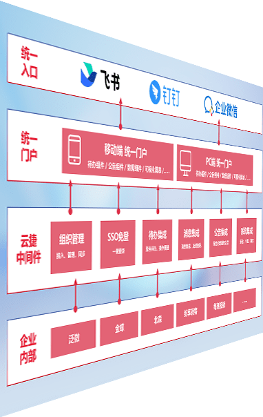 对协作平台提供支持服务,,,支持企业应用与协作平台对接,,包含组织同步、、、、消息集成、、、待办集成等。。支持目前主流的协作平台:钉钉、、、企微和飞书。。